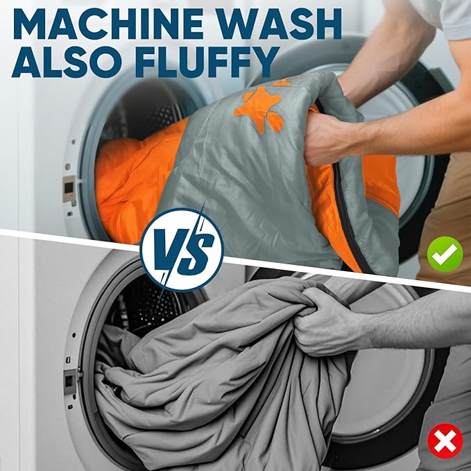 - Machine Washable: Crafted with double S-shaped stitching and Hollowfiber cotton filling, this sleeping bag is both water-resistant and windproof; The spun cotton inner lining ensures softness and warmth, maintaining its thermal efficiency even after machine washing without clumping