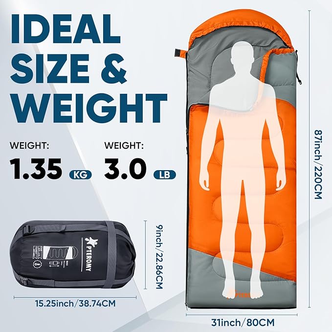 PTEROMY Sleeping Bags for Adults, Lightweight Water Resistant Backpacking Camping Sleeping Bag for Warm Cold Weather, Camping Essentials for Hiking Outdoor Travel