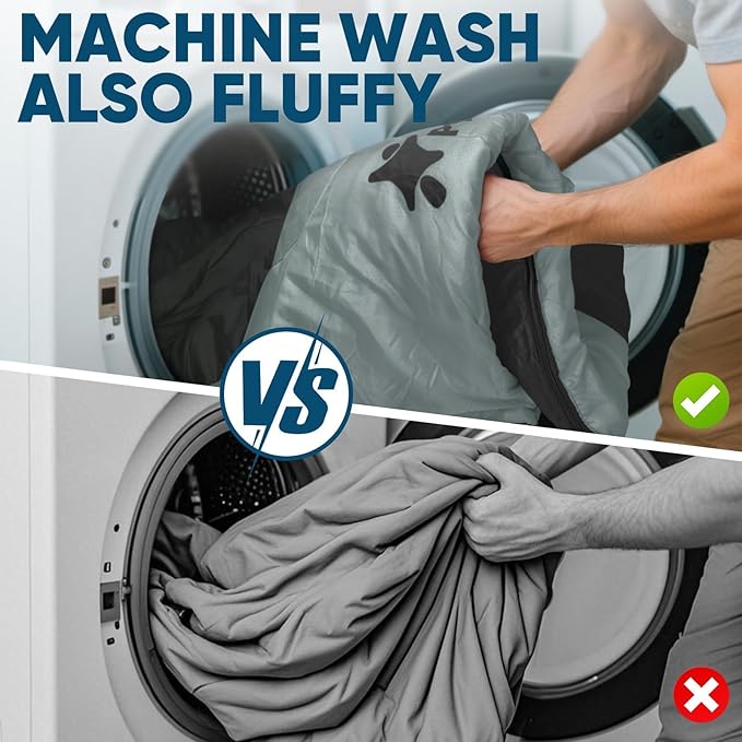 - Machine Washable: Crafted with double S-shaped stitching and Hollowfiber cotton filling, this sleeping bag is both water-resistant and windproof; The spun cotton inner lining ensures softness and warmth, maintaining its thermal efficiency even after machine washing without clumping
