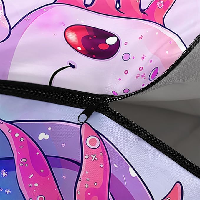 - 【Design】This ocean-themed sleeping bag features a cute axolotl pattern with waterweed coral elements, and the vibrant design adds fun to your outdoor journey.The zipper and waterproof fabric design keep you warm even on wet nights,allowing you to spend a great night!