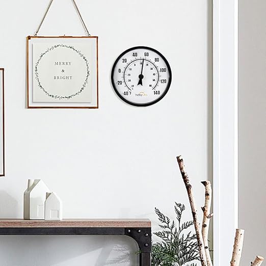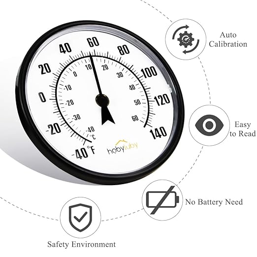 - Dimensions: The indoor outdoor thermometer measures 6.5 inches in diameter. Can be used alone or as a replacement dial for the HOBYLUBY decorative thermometer