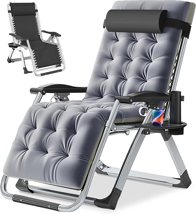 NAIZEA Padded Zero Gravity Chair, Folding Outdoor Lounge Chairs, Adjustable Reclining Camping Chairs with Cup Holder, Ergonomic Patio Lawn Chair for Balcony Beach Deck Yard