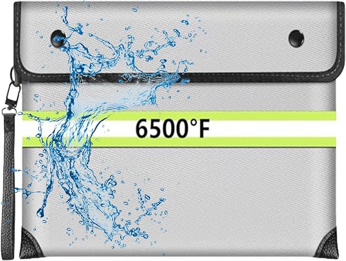 - ⚠️(Note) Fireproof does not mean it can withstand a long fire, and waterproof does not mean it can be immersed in water for a long time.It just gives you enough time to rescue your valuables. 🔥【6500°F Top Fireproof】The upgraded fireproof bag has passed the global flammability standard (US laboratory) and vertical burning test (SGS UL94 V-1) and can withstand temperatures up to 6500°F, far exceeding the typical fire temperature.