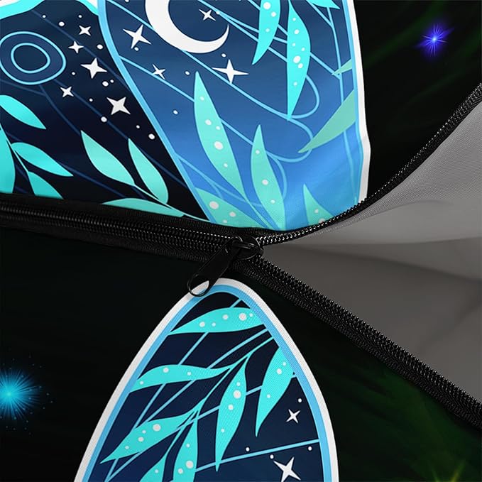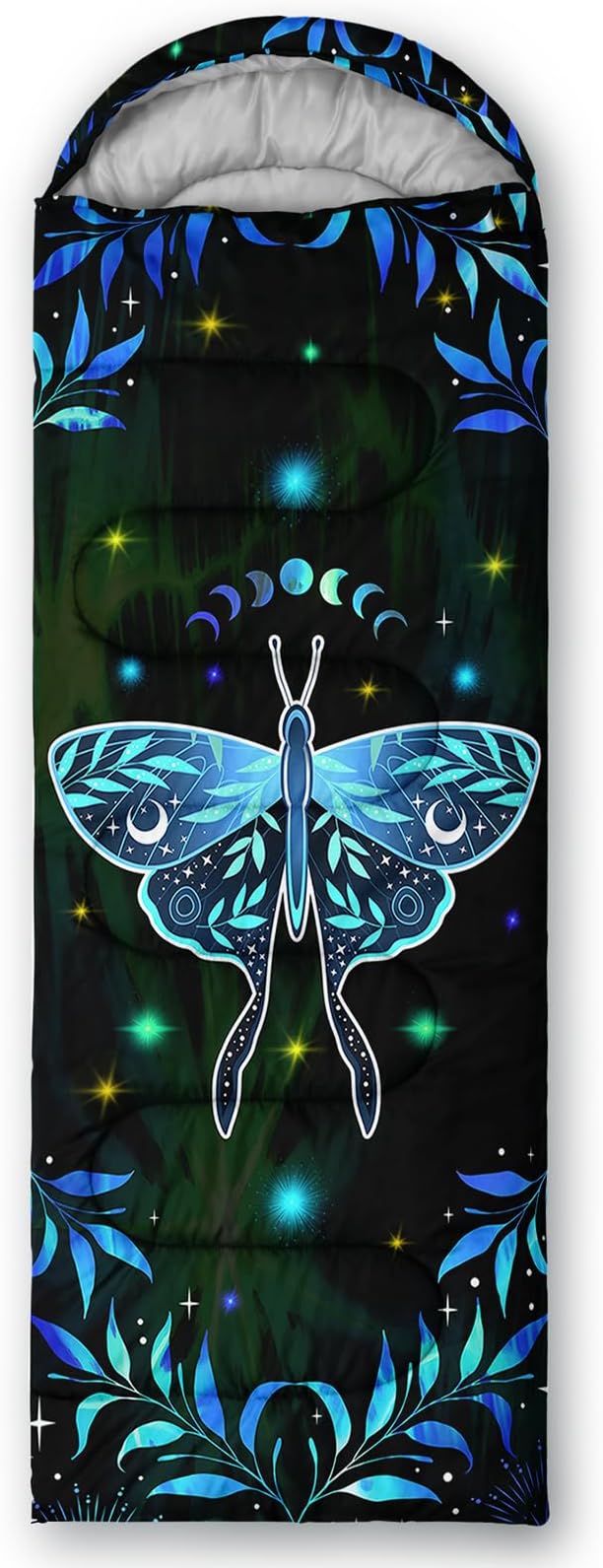 - Unique Moth Design:This Moth pattern sleeping bag is made of 3D digital printing with vibrant colors and patterns,size: 31W x 90L inches,temperature range: 32℉-77℉ (0℃-25℃),it also also have a weather resistant waterproof design to keep you warm and prevent you from any dampness,can be used in 3 seasons