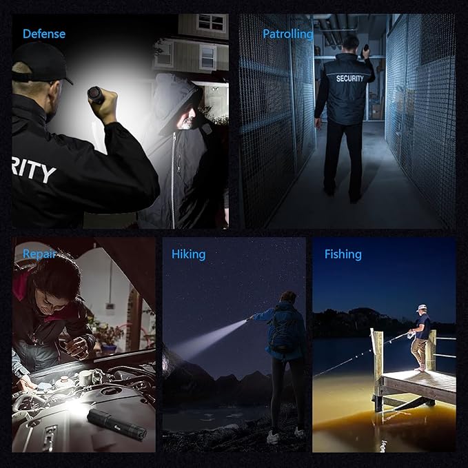 - PRACTICAL POUCH AND LANYARD & LIGHTWEIGHT AND PORTABLE - The flashlight pouch is made of durable nylon material, making it easy to attach to a belt. When camping or traveling, use our nylon holster and nylon anti-loss lanyard to experience true hands-free use. The emergency flashlight is less than 5.8 inches long and weighs only 0.68 pounds, making it easy to carry in a pocket or bag for daily use, outdoor activities, or emergencies.