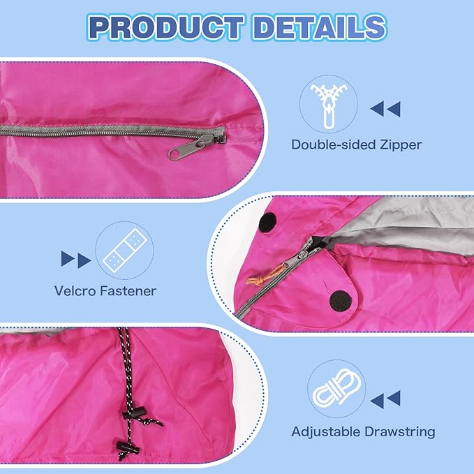 - Windproof & Ventilated: Stay cozy even in chilly breezes with the hood with a drawstring for a snug fit, while the velcro fastener secures the zipper to prevent drafts. The zippered bottom allows to breathe feet and regulate body temperature, ensuring comfort in fluctuating weather—combining cozy warmth with breathable performance for all-weather reliability.