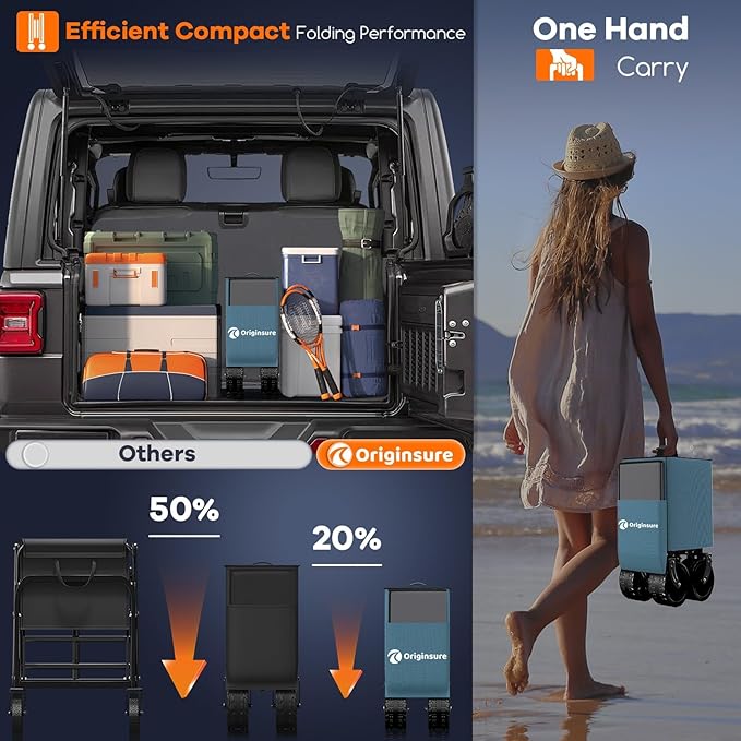 - ใ๐ฃ๐ฟ๐ผ๐ฑ๐๐ฐ๐ ๐ฆ๐ถ๐๐ฒ & ๐๐ฐ๐ฐ๐ฒ๐๐๐ผ๐ฟ๐ถ๐ฒ๐ใOriginsure folding carts unfolded size: 48.43"x 24.02"x 24.41"(42.52"), folded size๏ผ9.84"x 12.99"x 24.41", wheel size๏ผ7"x 4", handle height from Ground: 42.52", with 1 Side Pocket, 2 Mesh Cup holders, 1 Storage Cover, and 1 Strap. Ready to use right out of the box, no assembly required.