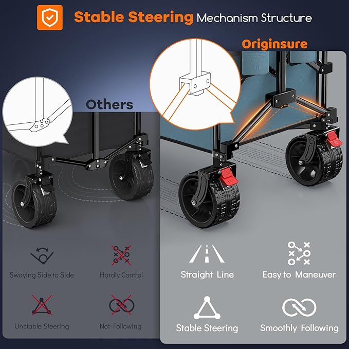 - ใ๐ฃ๐ฎ๐๐ฒ๐ป๐๐ฒ๐ฑ ๐ฆ๐๐ฎ๐ฏ๐น๐ฒ ๐ฆ๐๐ฒ๐ฒ๐ฟ๐ถ๐ป๐ด ๐ ๐ฒ๐ฐ๐ต๐ฎ๐ป๐ถ๐๐บ & ๐๐ฑ๐ท๐๐๐๐ฎ๐ฏ๐น๐ฒ ๐ฅ๐ฒ๐ฏ๐ผ๐๐ป๐ฑ๐ฎ๐ฏ๐น๐ฒ ๐๐ฎ๐ป๐ฑ๐น๐ฒ ๐๐ผ๐น๐ฑ๐ถ๐ป๐ด ๐ช๐ฎ๐ด๐ผ๐ป ๐๐ฎ๐ฟ๐ใThis foldable cart features an stable innovative steering mechanism structure, Restoring the swaying 3-point handle-frame connection, resolving the problems of swaying side to side, loss of control, and steering difficulties of similar carts, significantly enhanced stability and maneuverability. A rebound adjustable handle with the lock can be freely adjusted in length, suitable for all types of people.