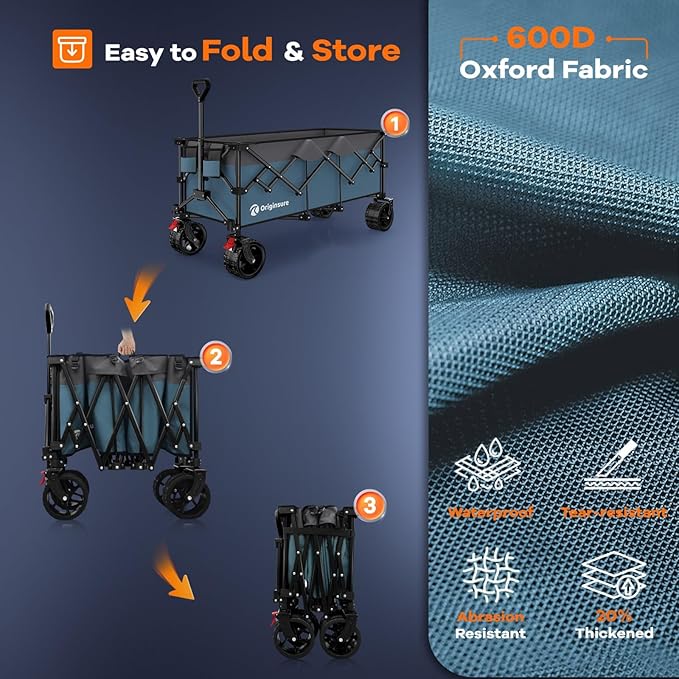 - ใ๐ญ๐ฌ.๐ฏ๐ฒ ๐ฐ๐ ๐ณ๐ ๐๐ฎ๐ฟ๐ด๐ฒ ๐๐ฎ๐ฝ๐ฎ๐ฐ๐ถ๐๐ ๐๐ถ๐๐ต ๐ฆ๐บ๐ฎ๐น๐น๐ฒ๐ฟ ๐๐ผ๐น๐ฑ๐ฒ๐ฑ ๐ฆ๐ถ๐๐ฒ ๐ฃ๐ผ๐ฟ๐๐ฎ๐ฏ๐น๐ฒ ๐๐ผ๐น๐น๐ฎ๐ฝ๐๐ถ๐ฏ๐น๐ฒ ๐๐ฒ๐ฎ๐ฐ๐ต ๐ช๐ฎ๐ด๐ผ๐ปใOriginsure foldable wagon cart, 48.43 "L x 24.02 "W x 24.41 "H large unfolding size, 10.36 cu ft/300L massive storage space, triple the capacity of similar wagons. Adopting an innovative folding design that maintains its height, the Capacity reduces to 1.36 cu ft when folded, only 1/3 of other carts. Compact and space-saving, it can be perfectly stored in the car trunk and room corners.