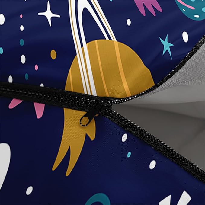 - Explore the Cosmos in Style: This Galaxy Sleeping Bag features a mesmerizing starry night design, perfect for little stargazers and space enthusiasts. Let your child’s imagination soar as they drift off to sleep under a blanket of stars