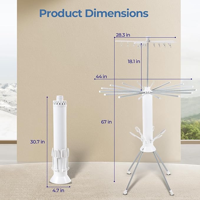 - 【Stable and Durable】Crafted from high-quality metal, our laundry drying rack is both sturdy and lightweight, resistant to rust, even when wet.With a high load capacity of up to 66 lbs, the four-legged support design ensures stability, making it ideal for windy conditions.