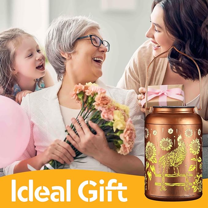 Solar Lanterns Outdoor Waterproof Hummingbird Garden Decor Christmas Gifts for Women Mom Grandma Hanging Lights Metal Decoration Outside for Yard, Patio,Backyard,Porch(Rooster)