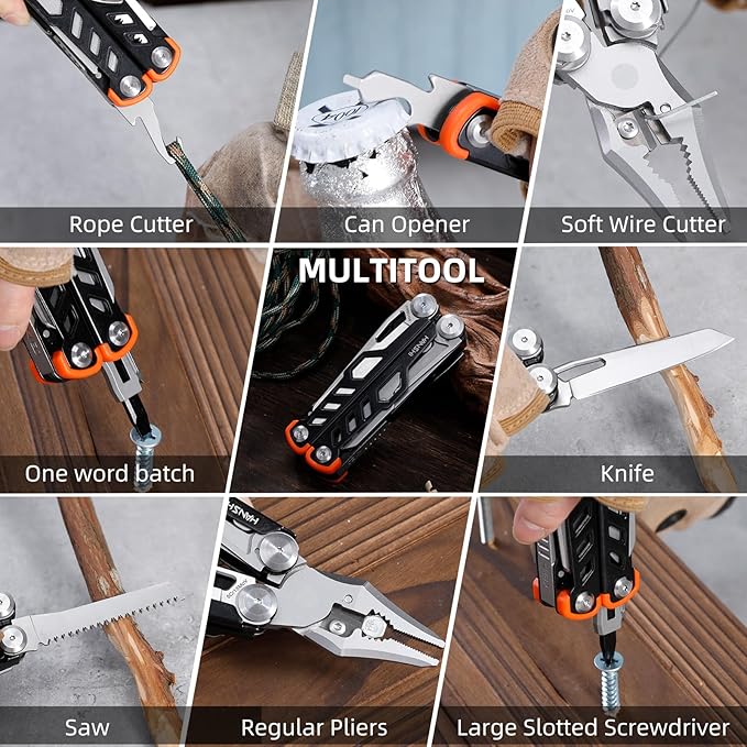 - 6.More Applications : All the tools have well-sized holes or bumps for easy opening.It is an ideal milti-pliers for outdoor activities like camping,adventures,hiking,hunting and more.