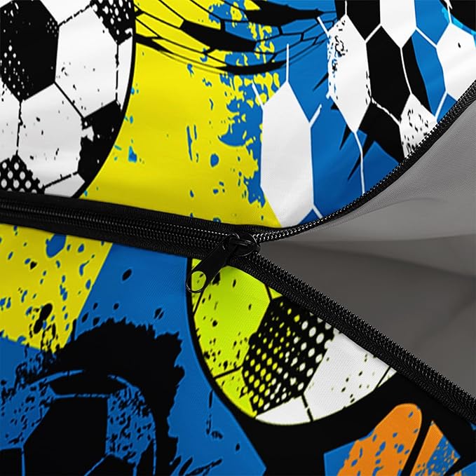 - The sleeping bag is themed with vibrant soccer elements, with a realistic soccer pattern printed on the surface, and the texture and stitching of the soccer ball is clearly visible, as if a real soccer ball is attached to it, so that people can feel the passion and vitality of the soccer game at a glance.