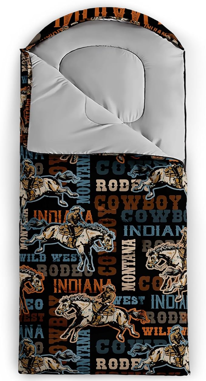 - Themed on classic western cowboy elements, the sleeping bag is printed with realistic cowboy hats, boots, lasso, cowboy badges and other patterns, with bright colors and a sense of hierarchy, as if the Wild West is condensed in the sleeping bag.