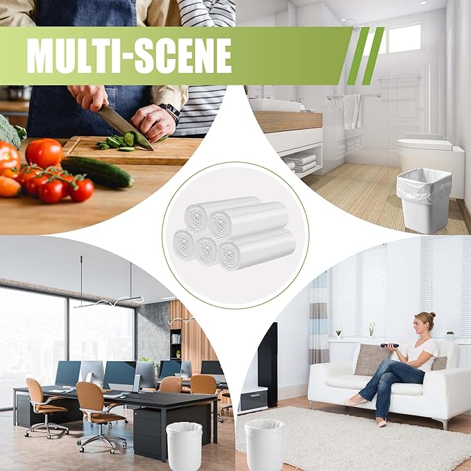 - 【Multi-purpose Bin Bags】 This biodegradable garbage bag is not only suitable for indoor (office, kitchen, living room, bedroom, bathroom, shredder, etc.), but also for outdoor (cat litter, dog dung, car waste, etc.).