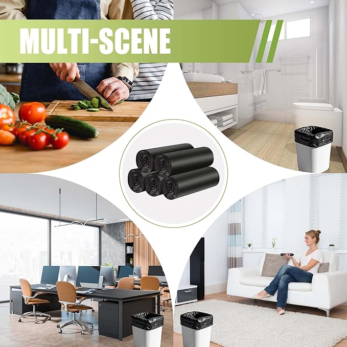 - 【Multi-purpose Bin Bags】 This biodegradable garbage bag is not only suitable for indoor (office, kitchen, living room, bedroom, bathroom, shredder, etc.), but also for outdoor (cat litter, dog dung, car waste, etc.).