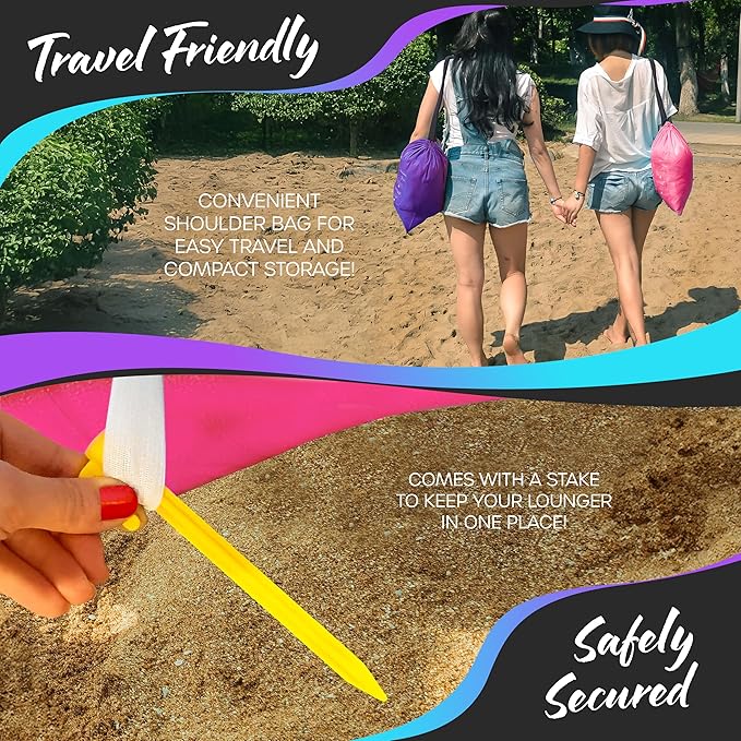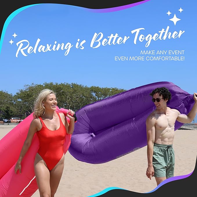 - INFLATABLE LOUNGE CHAIR FOR A FUN VIBE: Spark laughter & excitement at any gathering with this portable lounge chair air hammock , sure to catch attention & earn compliments with the purple & pink combo. A great gift for outdoor enthusiasts, the inflatable lounger air sofa 2 pack is a versatile addition to anyone's adventure gear. Bring comfort anywhere, whether you need a concert chair , festival chair , beach hammock , pouch couch , or even an alternative to an inflatable bean bag chair .