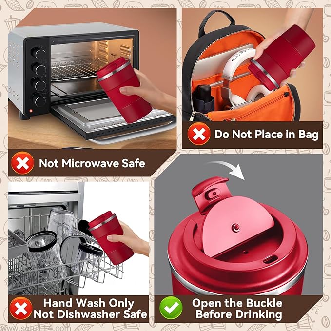 - Secure Leak-Proof Lid: The mug comes with a carefully designed BPA-free lid that forms a secure seal, significantly reducing the risk of spills or leaks during movement. Perfect for driving, commuting, or multitasking at your desk. You can toss it in your bag or backpack with confidence.