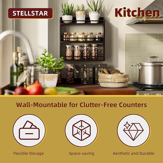 - SIMPLE, ELEGANT & VERSATILE: This rack is both a stunner and a workhorse. Its minimalist design oozes elegance, blending seamlessly with any decor to add warmth. But it’s more than a spice rack! Use it to organize your coffee bar, declutter your bathroom, or neatly stack snacks in mason jars. Wherever you place it—kitchen, pantry, bathroom—it transforms chaos into a tidy, stylish space
