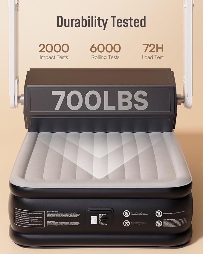- Wide Applications: Queen blow up mattress with built in pump is perfect for overnight guests, short stays, temporary bed, home use, bonus room, visit, moving, party, travel and camping trips.