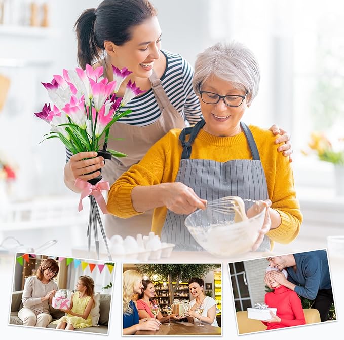 - 24 BLOOMING SOLAR LILIES: 4 pack outdoor solar garden lights have 24 blooming bigger lily flowers come in 3 colors: purple, pink, and white. The lily flowers made of fine processed fabric, stems and leaves are propped up by iron wire, you can move the stems on them to whatever position you want them in. When night falls, these solar garden lights can light up your garden and create a dreamy atmosphere.