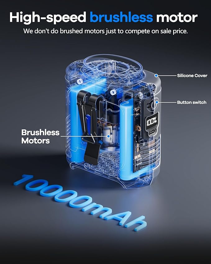 - [Rugged, Shockproof, and Anti-Slip Build] Built to withstand harsh outdoor environments, this portable waist fan features a protective silicone cover for enhanced grip and drop resistance. The reinforced manganese steel clip provides a firmer hold compared to standard plastic clips, ensuring the fan stays securely in place during high-movement activities like construction, delivery tasks, or outdoor adventure