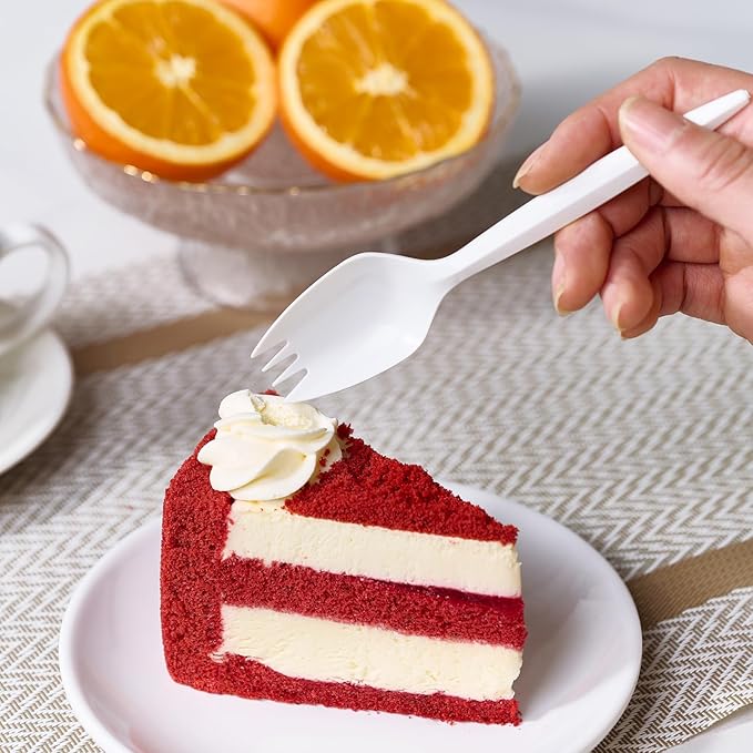 - Clean and Crisp White: Neutral white sporks bulk blend seamlessly with any table setting, enhancing the visual appeal for casual or formal dining.