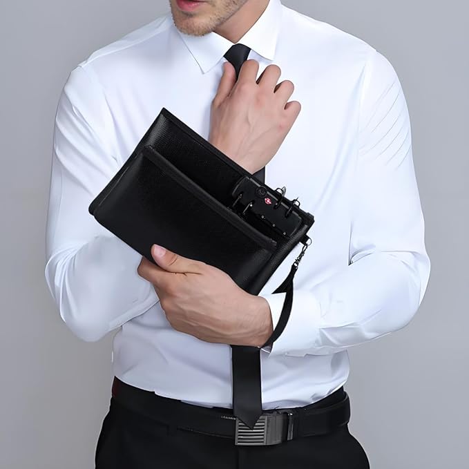 - Lock It Safely:The mechanical structure of the three-digit code lock of the fireproof money bag can withstand the harsh external environment and has a wide range of applications.You could lock your notary bag / bank bag anytime, anywhere.