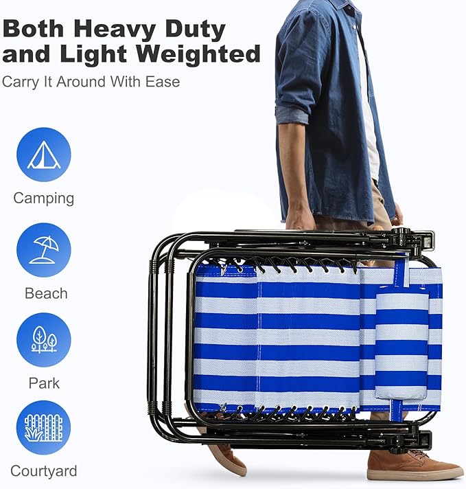 - PORTABLE DESIGN: Lightweight and foldable, our Lounge Chairs are easy to take with you on the go, whether you're heading to the beach, park, or your child's next sporting event.