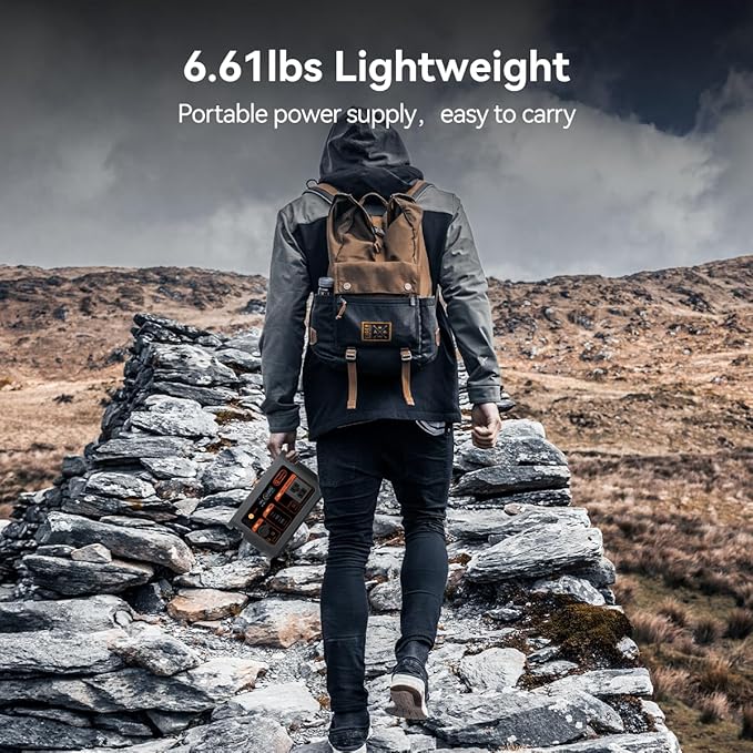 - 【Compact & High-Capacity LiFePO4 Battery】 Powered by a 179.2Wh (22.4V/8Ah) LiFePO4 battery, this portable power station delivers long-lasting energy in a lightweight 6.6 lb design—perfect for camping, outdoor work, road trips, or emergency backup.