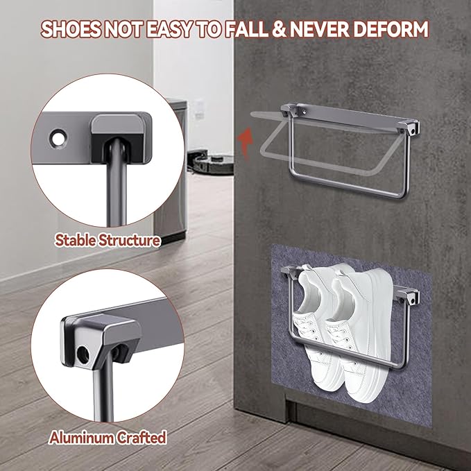 4PCS Foldable RV Shoe Rack with Wall Protector Double-sided Tape Wall-Mounted Aluminum Camper Shoe Storage Organizer Shelf for Various Shoes
