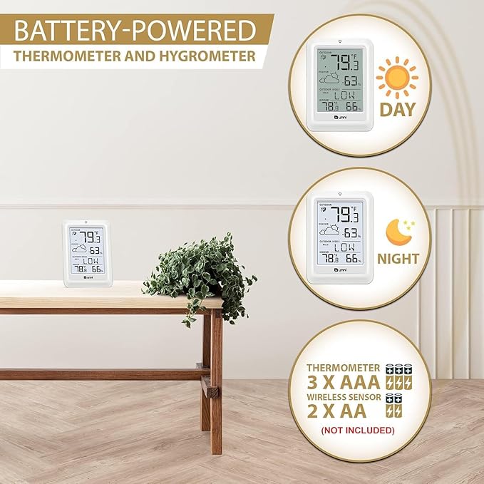 - WHAT YOU GET – You get the indoor thermometer with a display screen, an outdoor sensor, one-year warranty(not including batteries). Support up to 3 sensors, make sure they are in different channels.