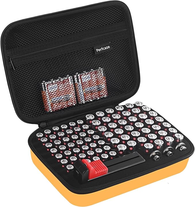 - 【with BATTERY TESTER】 A battery tester is included in the battery organizer case, can measure the remaining battery power and distinguish between new and old batteries.