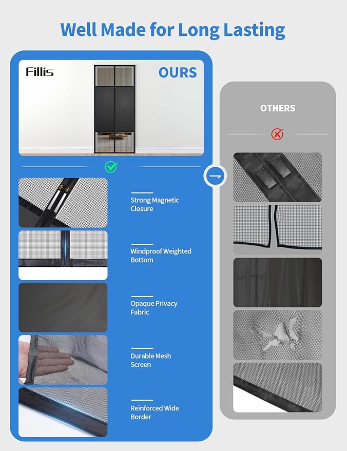 - Hands-Free Entry & Auto Close: The magnetic screen door features a strong self-sealing magnetic closure, allowing hands-free access for kids and pets. The automatic closure ensures a tight seal, keeping your home insect-free.