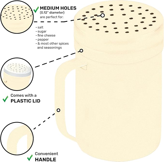 CUSINIUM 14oz Beige Stainless Steel Salt Pepper Dredge Shakers - With Plastic Cap - With Handle - Pack of 2