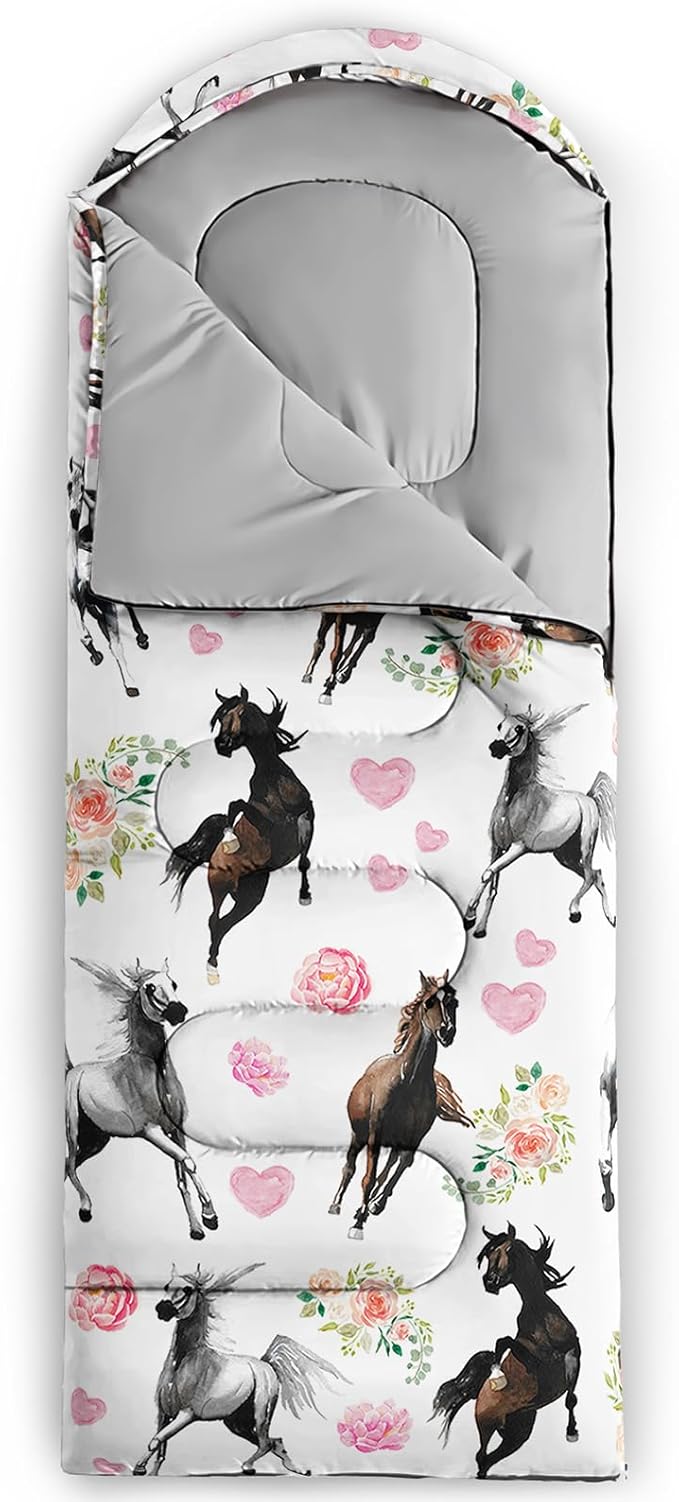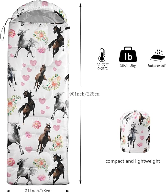 - SUITABLE:The sleeping bag can be used for 3 Seasons.SIZE:90.5"L x 31.5"W Suggenal extreme temperature: 41 ℉ -77 ℉.Applicable in a variety of scenarios,such as Travel camping pajamas party,It's very suitable for you to travel with your children.Half-circle hood with adjustable drawstring,which can keep you warm and prevent your humidity