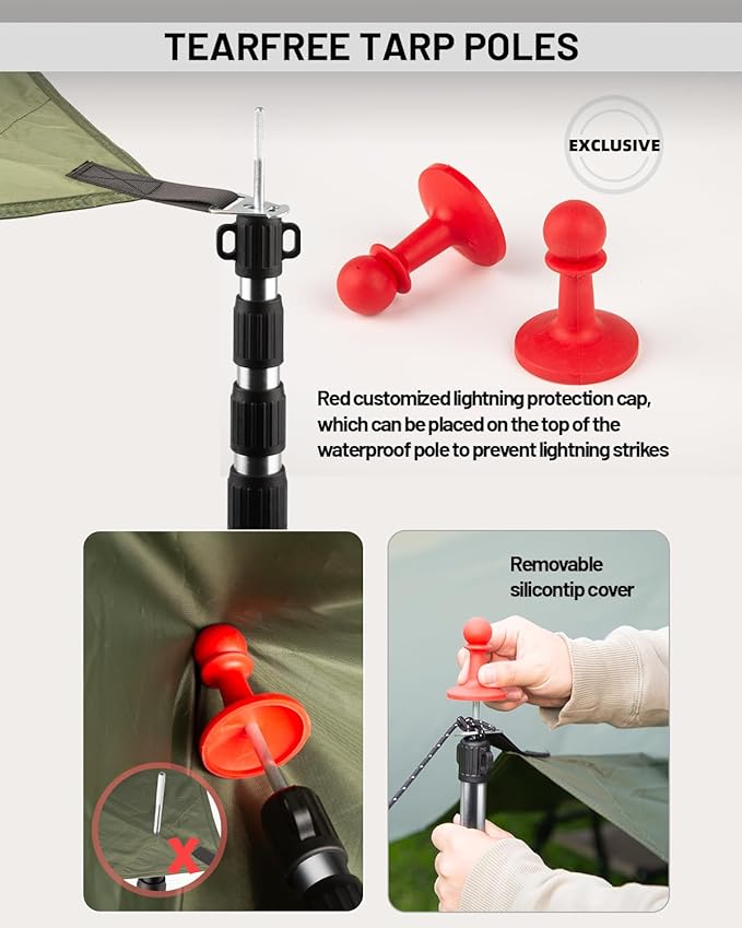 - EXQUISITE ACCESSORIES: AVOFOREST aluminum tent poles specially designed a unique lightning protection cap for the waterproof pole series, Lightning protection cap is 1.97 inches in diameter and 2.75 inches in height, It is large enough and stable, The red color with black pole is not only beautiful, but also prevents lightning strikes outdoors.