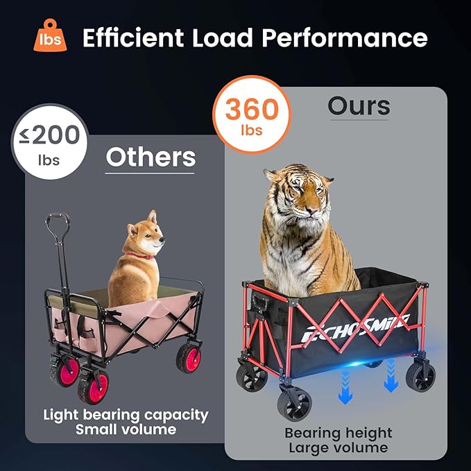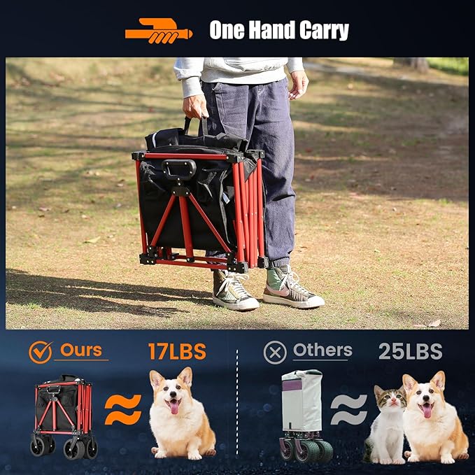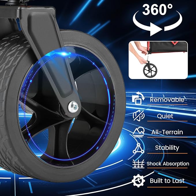 - 【Glide Smoothly & Steer Freely】Equipped with 6.7'' diameter wheels and 3'' wide treads, plus a dual-bearing system for smooth motion, the front wheels rotate 360° for maximum control. Easily handles sand, grass, and uneven ground, making pulling or pushing effortless, even when fully loaded.