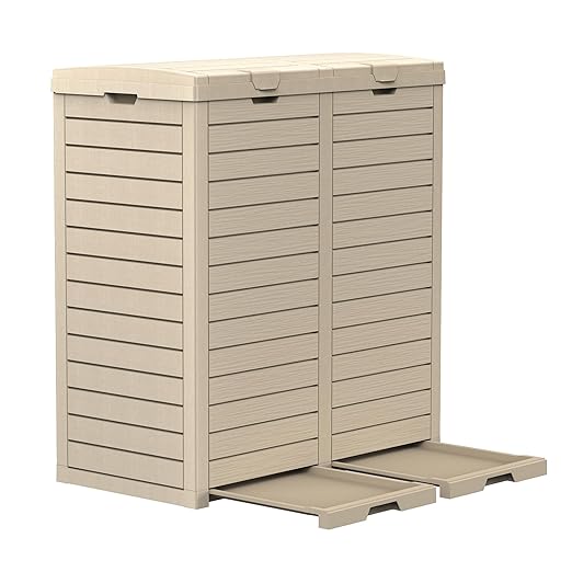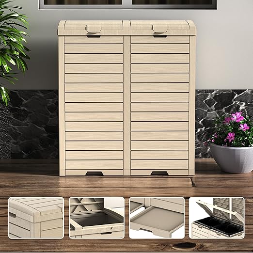 Vixzen 68Gallon Outdoor Trash Can with Lid,Waterproof Resin Waste Bin,Lightweight,Large Sturdy Garbage Bin for Patio,Kitchen,Backyard,Gray