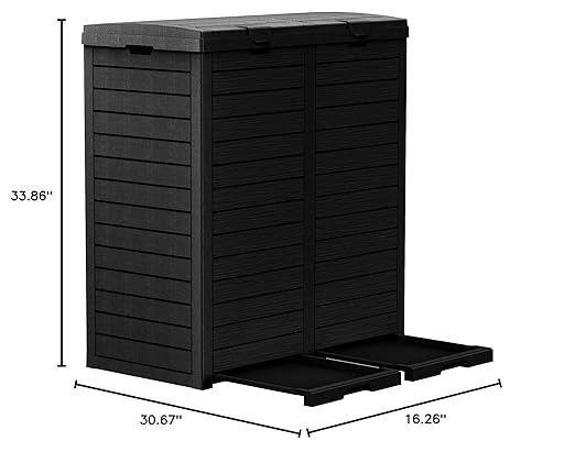 Vixzen 68Gallon Outdoor Trash Can with Lid,Waterproof Resin Waste Bin,Lightweight,Large Sturdy Garbage Bin for Patio,Kitchen,Backyard,Black