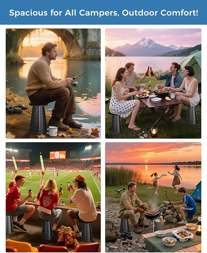 - Versatile Use for All Scenarios: Rain or shine, our waterproof collapsible stool delivers comfort. Perfect for camping, hiking, BBQs, gardening, or indoor use in bathrooms/kitchens