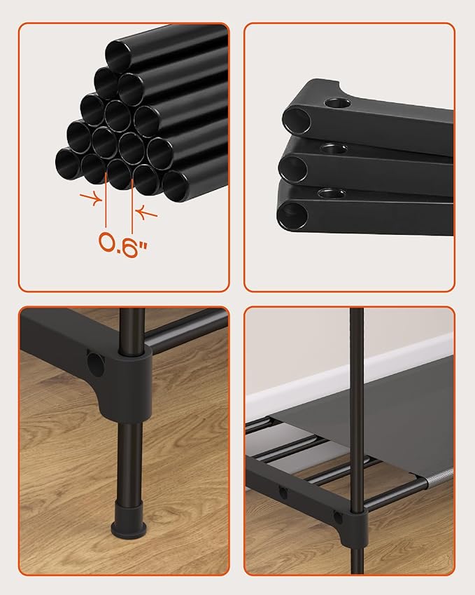 - [Easy to Installation] This clothes storage organizer comes with detailed installation instructions, no tools required. Simply connect the tubes and fabric shelves using the plastic connectors, and that's it! Your clothes rack is assembled in a breeze.