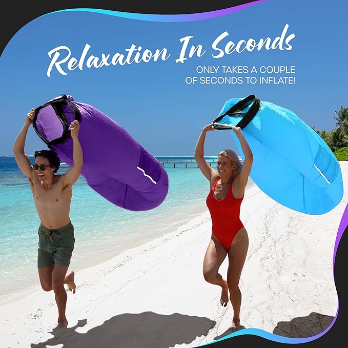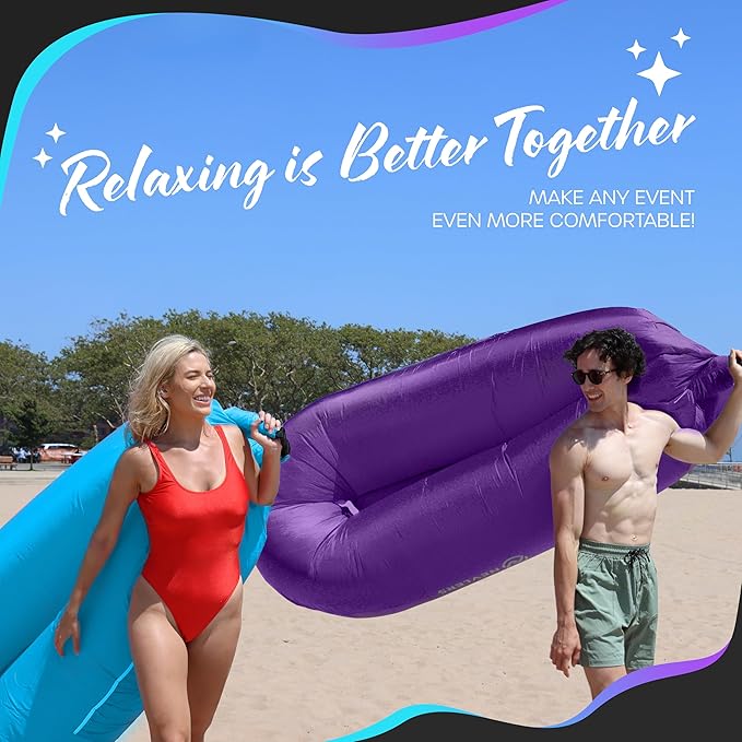 - INFLATABLE FURNITURE FOR ON-THE-GO: With our inflatable couch for adults & kids, pack light & relax anytime, anywhere! Use our inflatable couch for camping , comfort at the beach or under the stars, a backyard barbecue, relaxing by the pool, an outdoor adventure, a pet bed & much more. From music festivals to firework shows & picnics in the park, you'll have the adaptable air sofa you need. Take convenience with you wherever you go with the Nevlers Blue & Purple Air Lounger Inflatable Set!