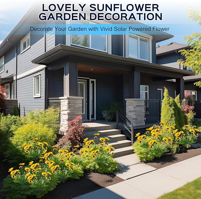 4 Pack Solar Garden Lights Outdoor, Colorful LED Waterproof Solar Powered Sunflowers Landscape Lights for Outside Yard, Patio, Pathway Decorative, Décor, Gifts, Two Lighting Modes