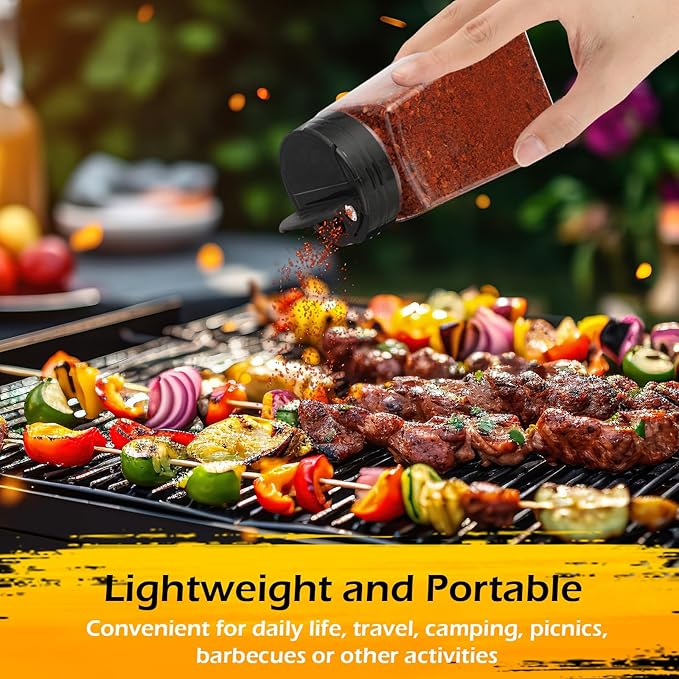 - Lightweight and Convenient: plastic seasoning jar weighs about 0.08 lbs and is very lightweight, the bottle is completely transparent, and the design is simple, lightweight and easy to clean; Not only is it a must have item in the kitchen, it is also a good choice to bring the spice jar if you go out for a picnic or barbecue