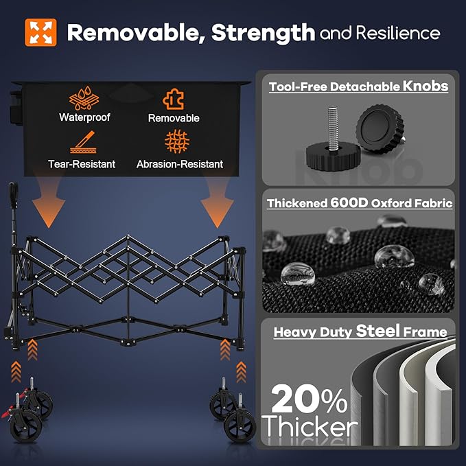 - ใ๐ฏ๐ฒ๐ฌ๐๐ ๐ช๐ฒ๐ถ๐ด๐ต๐ ๐๐ฎ๐ฝ๐ฎ๐ฐ๐ถ๐๐ ๐๐ฒ๐ฎ๐๐ ๐๐๐๐ ๐จ๐๐ถ๐น๐ถ๐๐ ๐ช๐ฎ๐ด๐ผ๐ป ๐๐ฎ๐ฟ๐๐ ๐๐ถ๐๐ต ๐ฆ๐๐๐ฟ๐ฑ๐ ๐๐ถ๐ด๐ต-๐๐๐ฟ๐ฒ๐ป๐ด๐๐ต ๐๐น๐น-๐บ๐ฒ๐๐ฎ๐น ๐๐ฟ๐ฎ๐บ๐ฒใOur outdoor collapsible cart is made of solid mental frame, 20% thicker than other carts. Featuring innovative structural design, static load capacity up to 360lb and dynamic load capacity up to 220lb, ideal for grocery, shopping, camping, garden, sports, travel. With double-layer thickened durable 600D Oxford fabric, waterproof, wear-resistant and tear-resistant, ensuring stable support for all your gear.