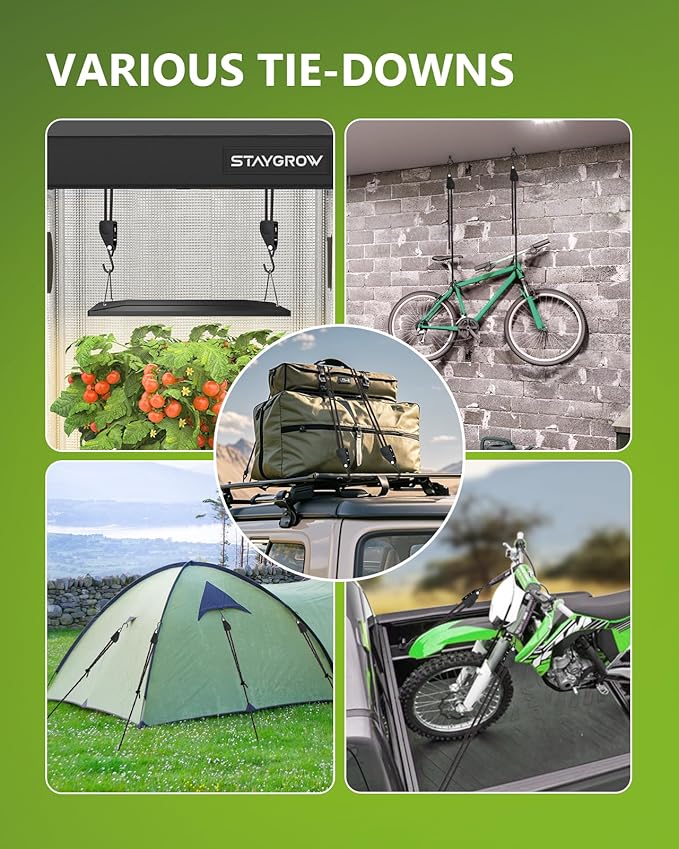 - Includes Soft Loop Tie Downs and Storage Bag - Ideal for creating secure anchor points on roof racks, truck beds, handlebars, and more, ensuring a versatile and reliable tie-down solution and easy to store