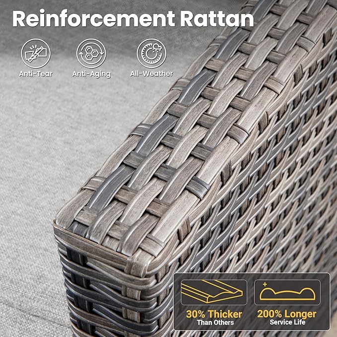 - Premium Wicker Rattan: Our modern outdoor sofa set is designed with a classic natural rattan look, all-weather sofa made of sturdy rust-resistant steel construction, providing strong support and balance for the patio seats.