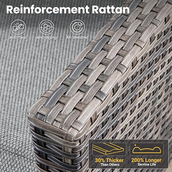 - Premium Wicker Rattan: Our modern outdoor sofa set is designed with a classic natural rattan look, all-weather sofa made of sturdy rust-resistant steel construction, providing strong support and balance for the patio seats.